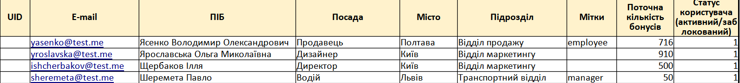 Також в таблиці є колонка з актуальною кількістю бонусів на поточному балансі користувача (позначено 1).