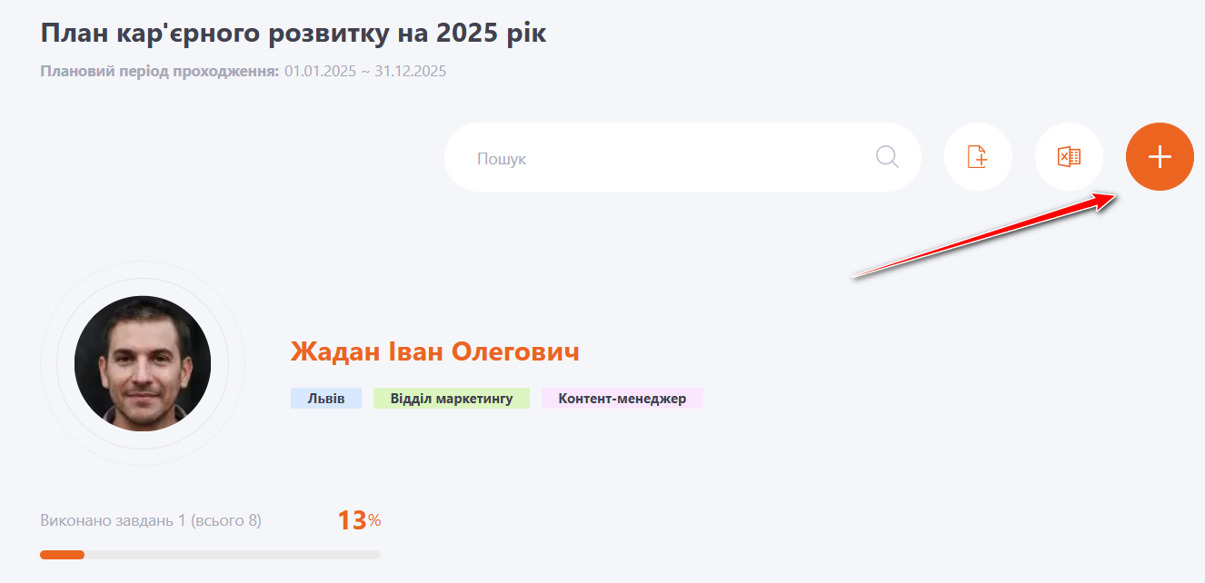 Для додавання Особистого завдання в План розвитку адміністратору потрібно: