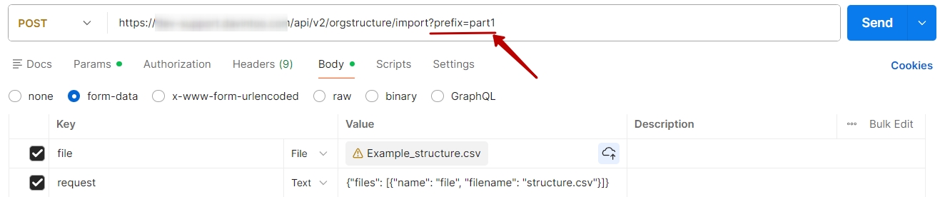 Для імпорту оргструктури потрібно надіслати POST запит на URI/api/v2/orgstructure/import.