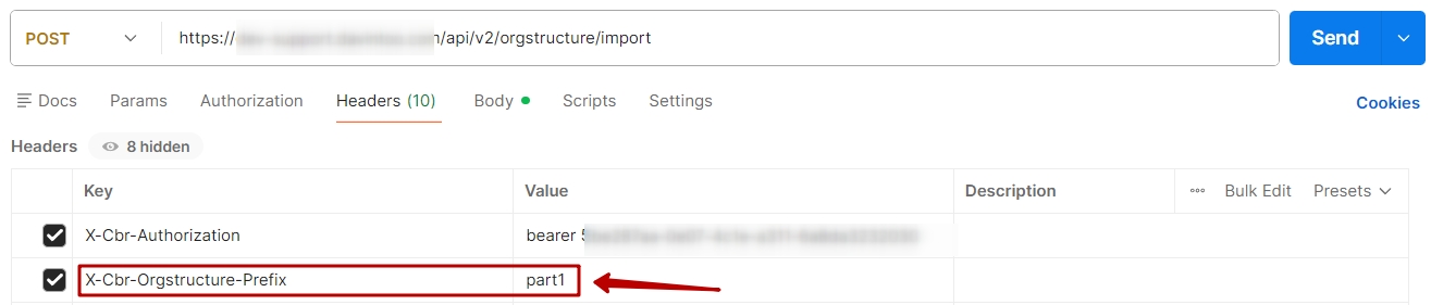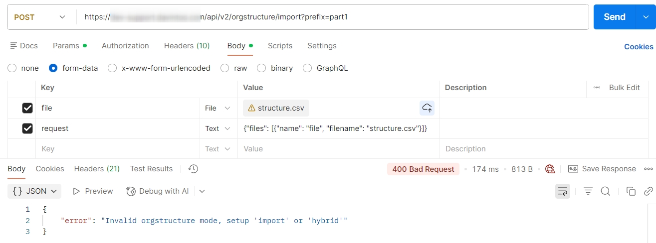 Замість CSV-файлу в тіло запиту можна додати інформацію про оргструктуру в JSON-форматі, наприклад: