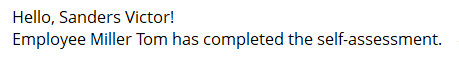 Notification to the user assigned as a manager in the assessment process, informing them that their subordinate has completed the self-assessment questionnaire.
