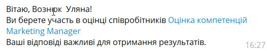 Повідомлення користувачеві про участь в оцінці. Сповіщення надсилається, коли користувачеві призначається анкета для оцінки.