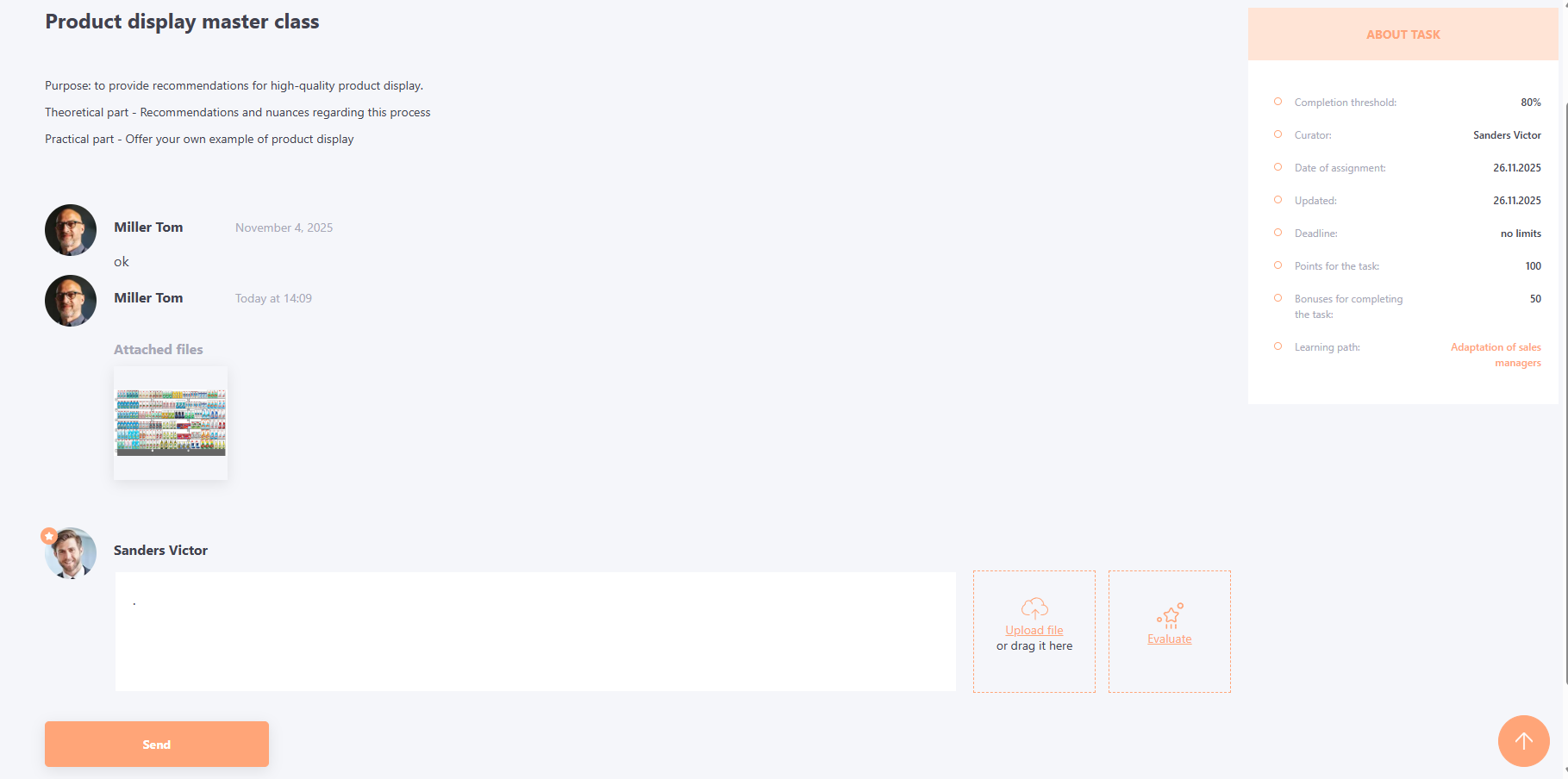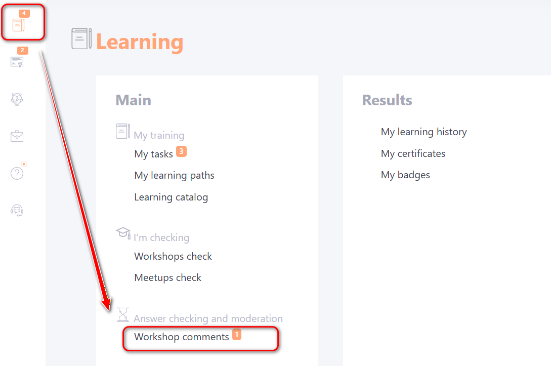 If a grade has already been assigned for the workshop (task status «Completed» or «Failed») and the user leaves comments afterward, these comments will not appear in the moderation section. However, a notification will still be sent to the curator’s email and messenger (if integration is enabled).