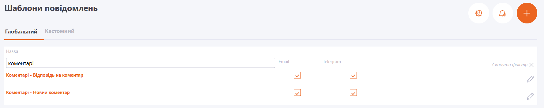 В таблиці відображається список всіх коментарів із завдань, бази знань та новин.