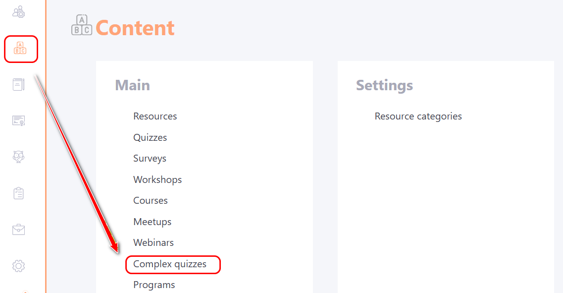 Content - Complex quizzes menu.