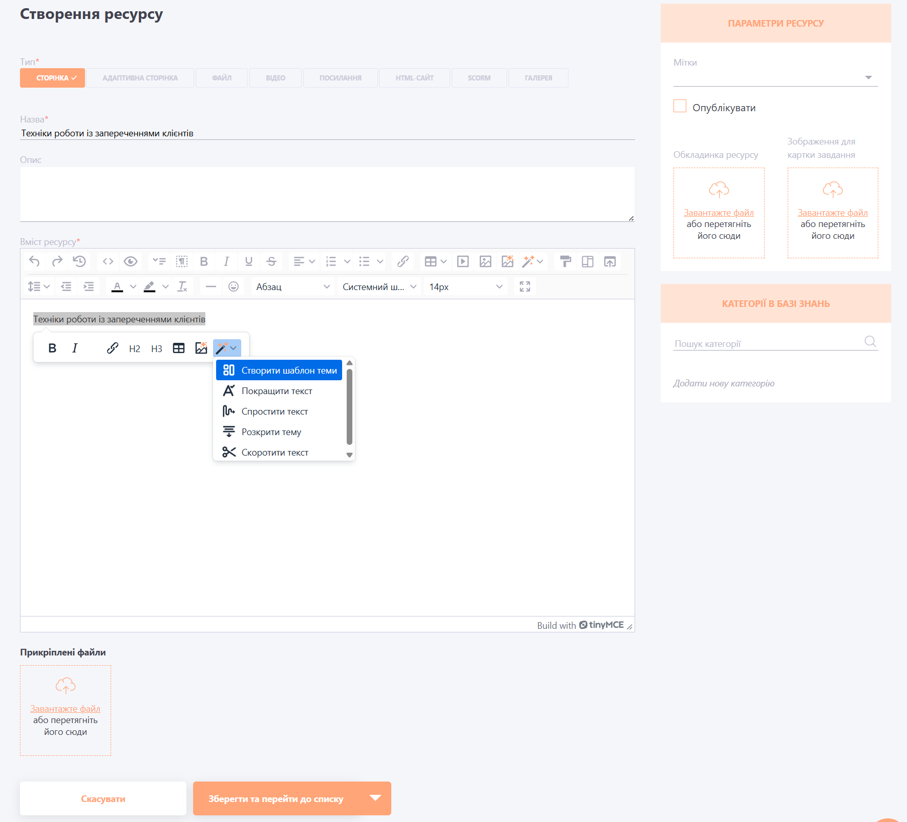 Створення та редагування ресурс-сторінки за допомогою AI