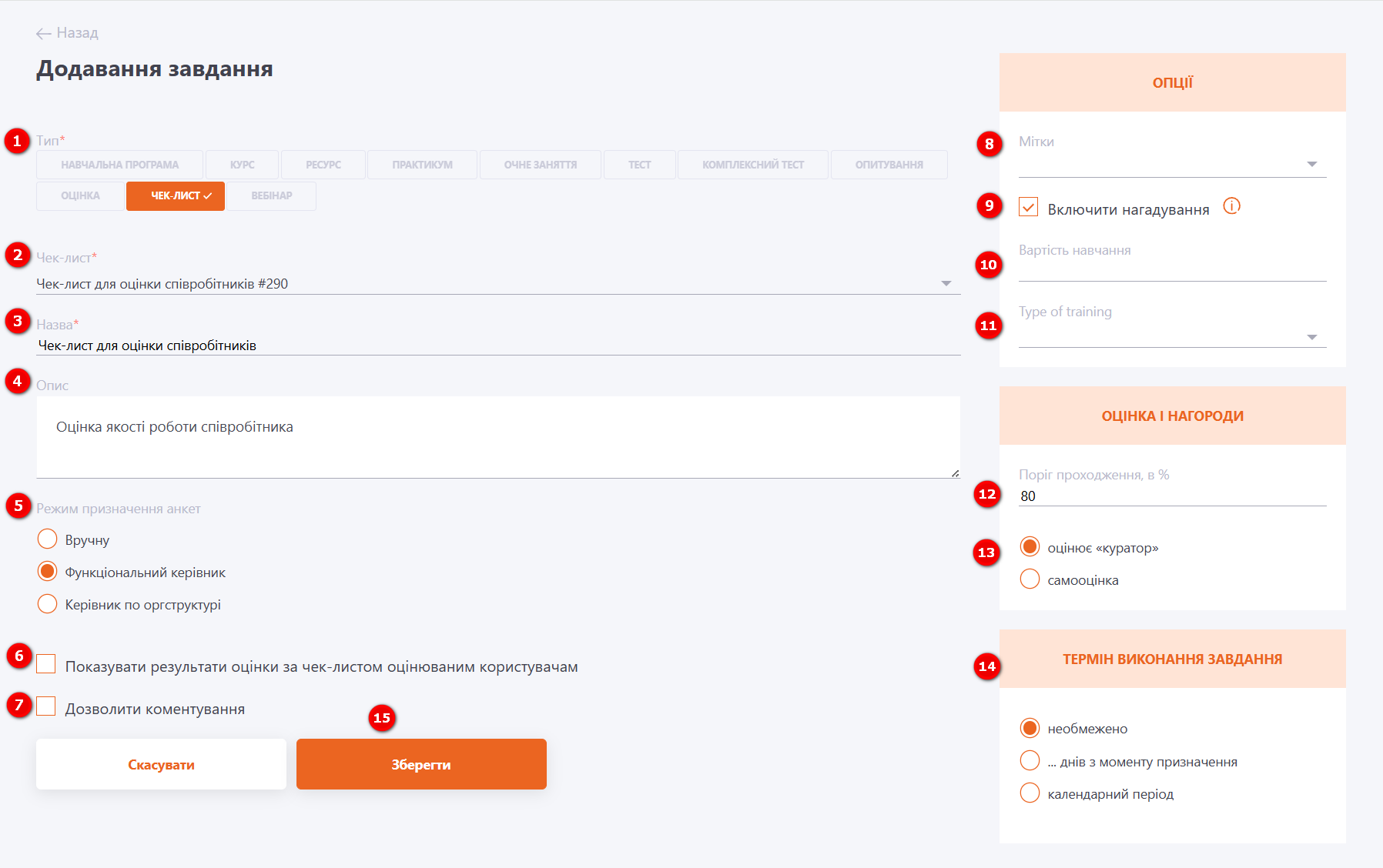 Головна/Оцінка/Чек-листи/Створення Завдання-Чек-листа