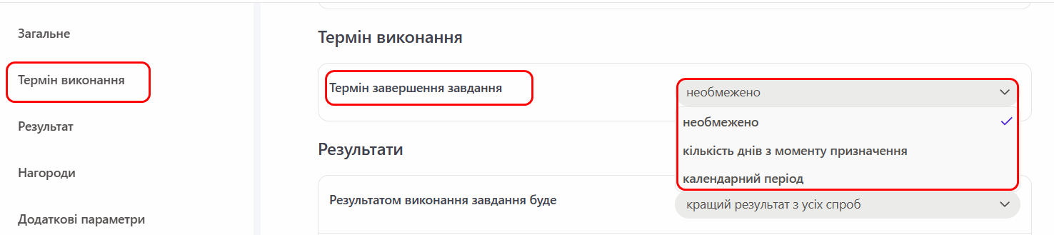 Термін завершення завдання - налаштування обмеження виконання завдання за часом (детальніше Термін виконання завдання).