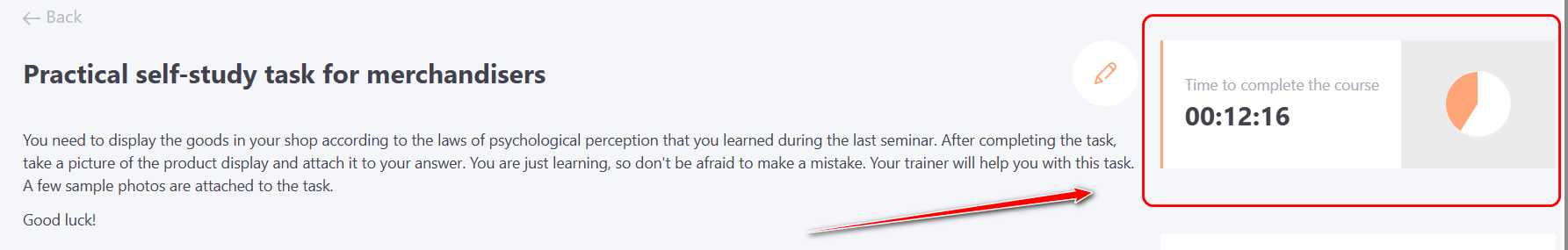 When the course completion time is limited, the preview page will display information about the amount of time allocated to complete the assignment.
