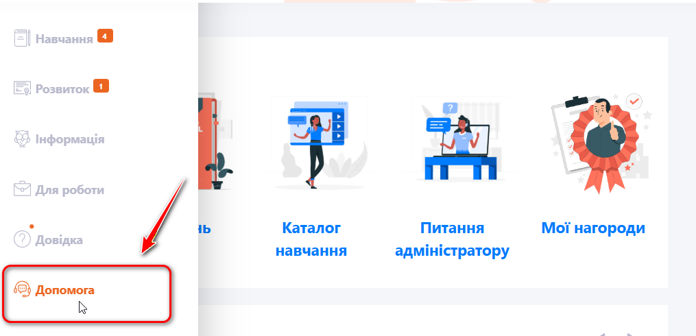 Після збереження налаштувань у меню користувачів з’явиться кнопка Допомога