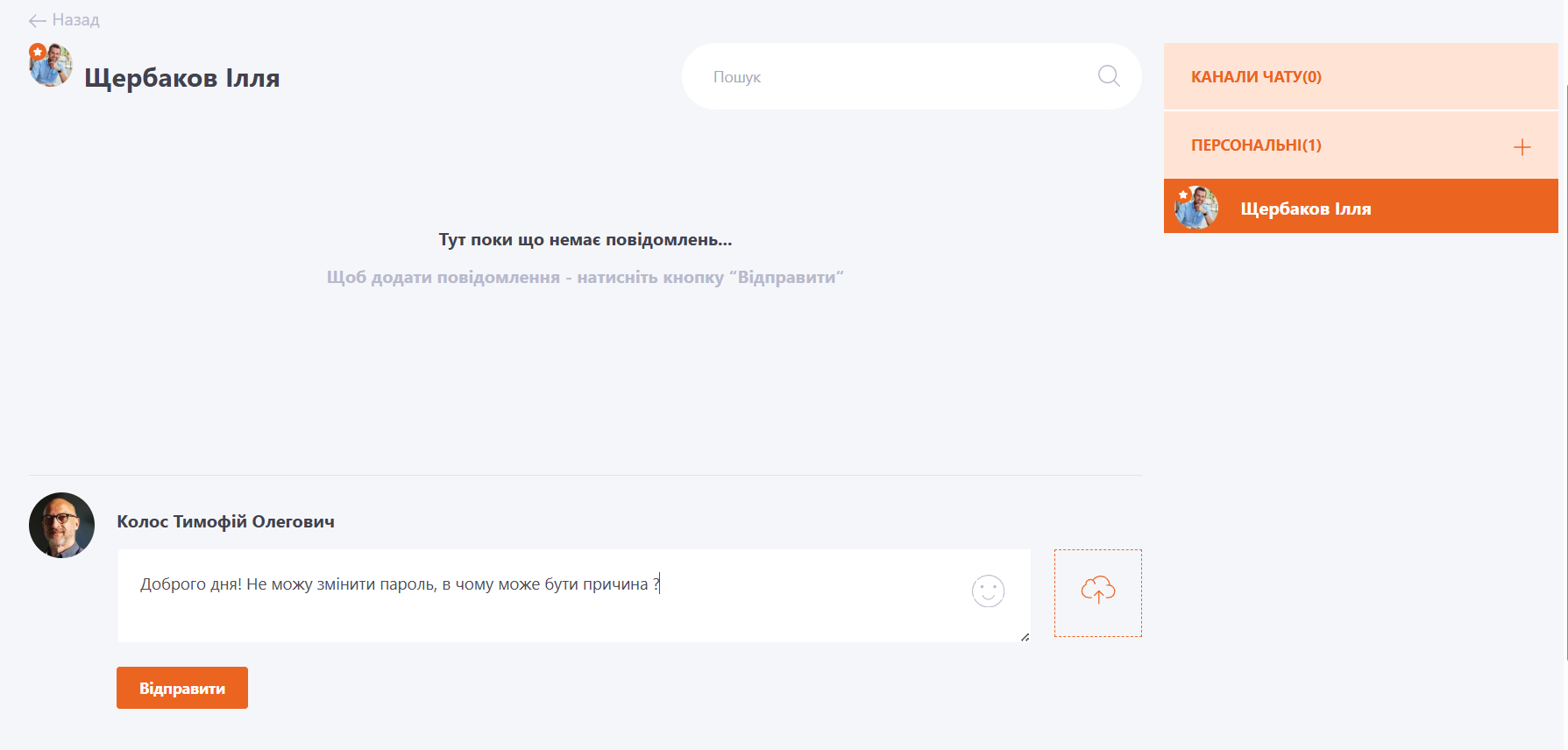 Персональний або прямий канал можуть створювати всі користувачі системи з доступом до Чату. Зробити це можна в Блоці "Персональні повідомлення".