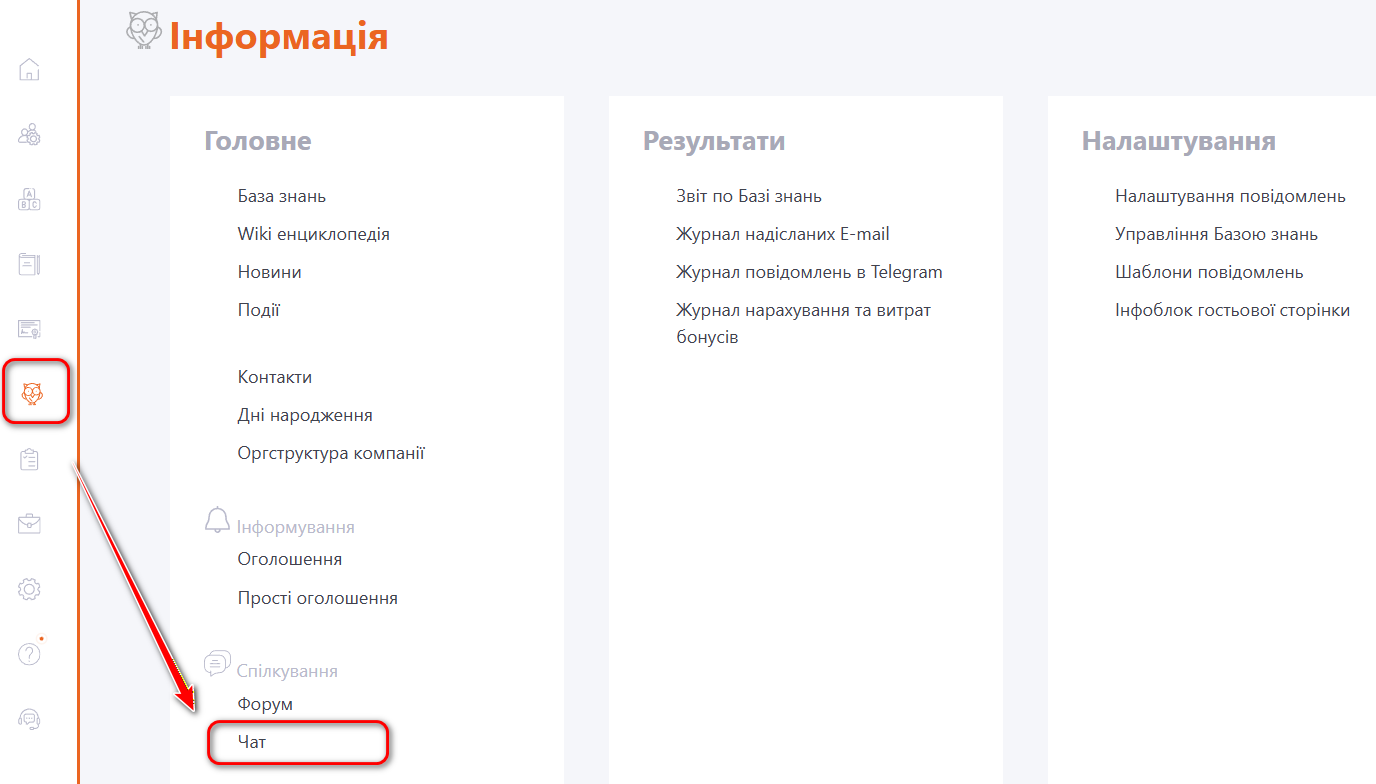 Для налаштування чату "Допомога" перейдіть до меню Інформація - Чат