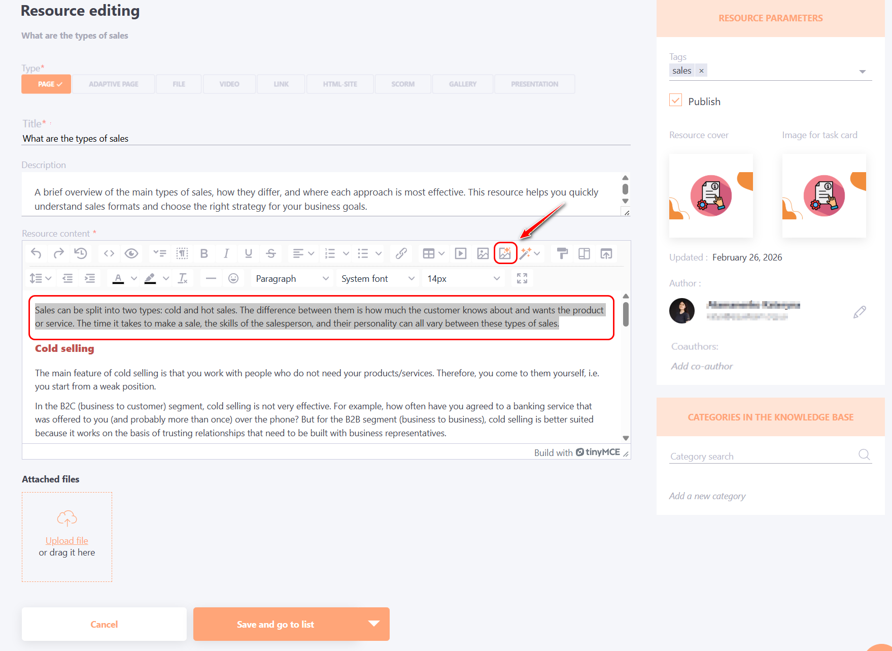 AI tools can be used to improve the page structure and edit text on any resource page.