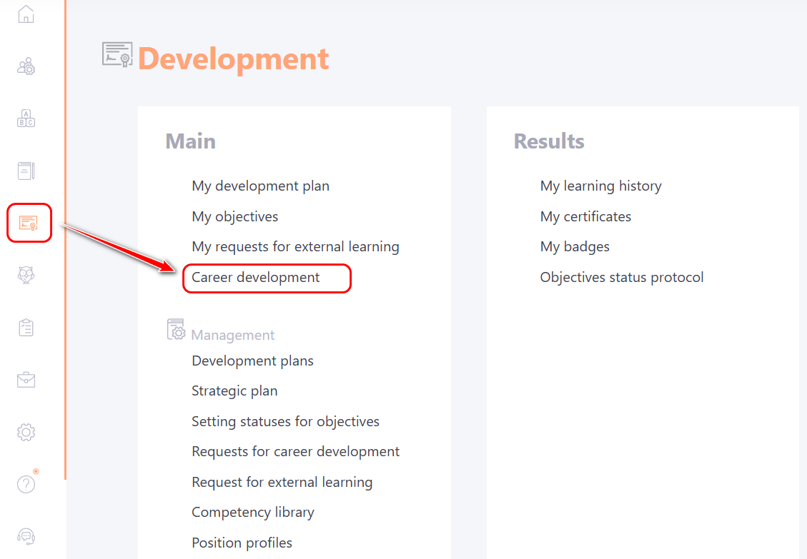An employee can submit a request for professional development in the Development - Career Development menu.
