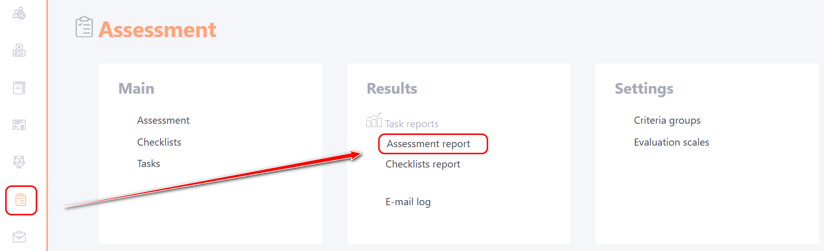 You can go to the Assessment Report page in the following ways: