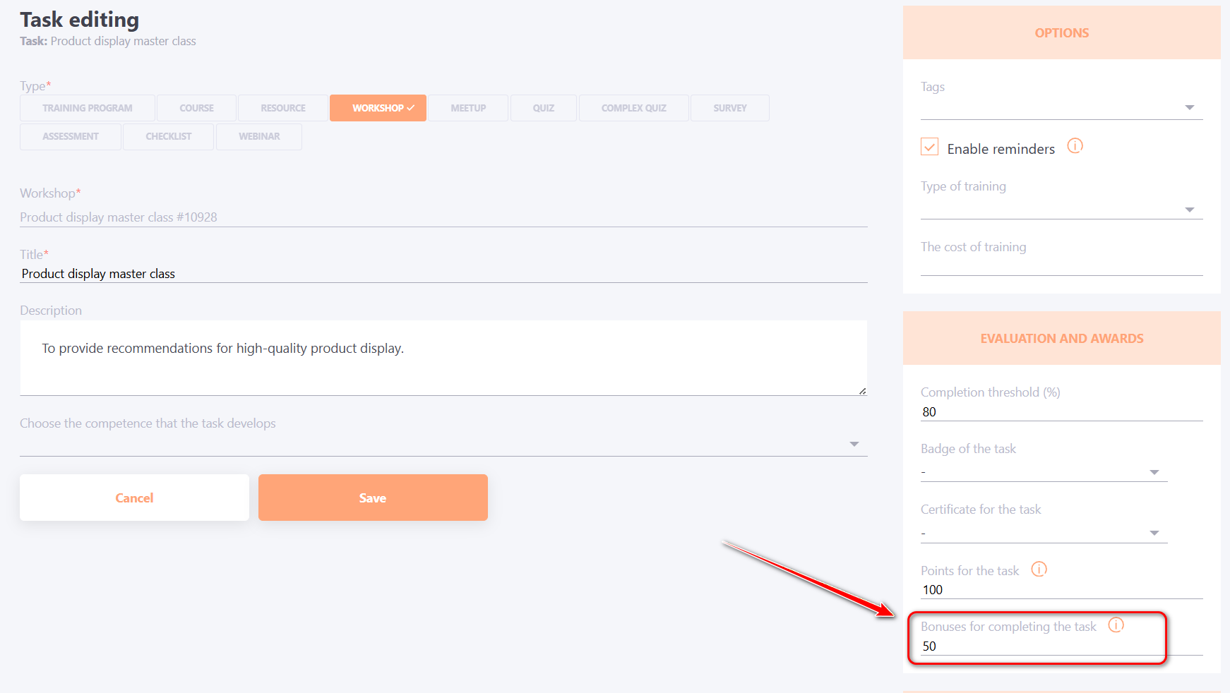 The number of bonuses that a user can receive is indicated on the task creation/editing page.