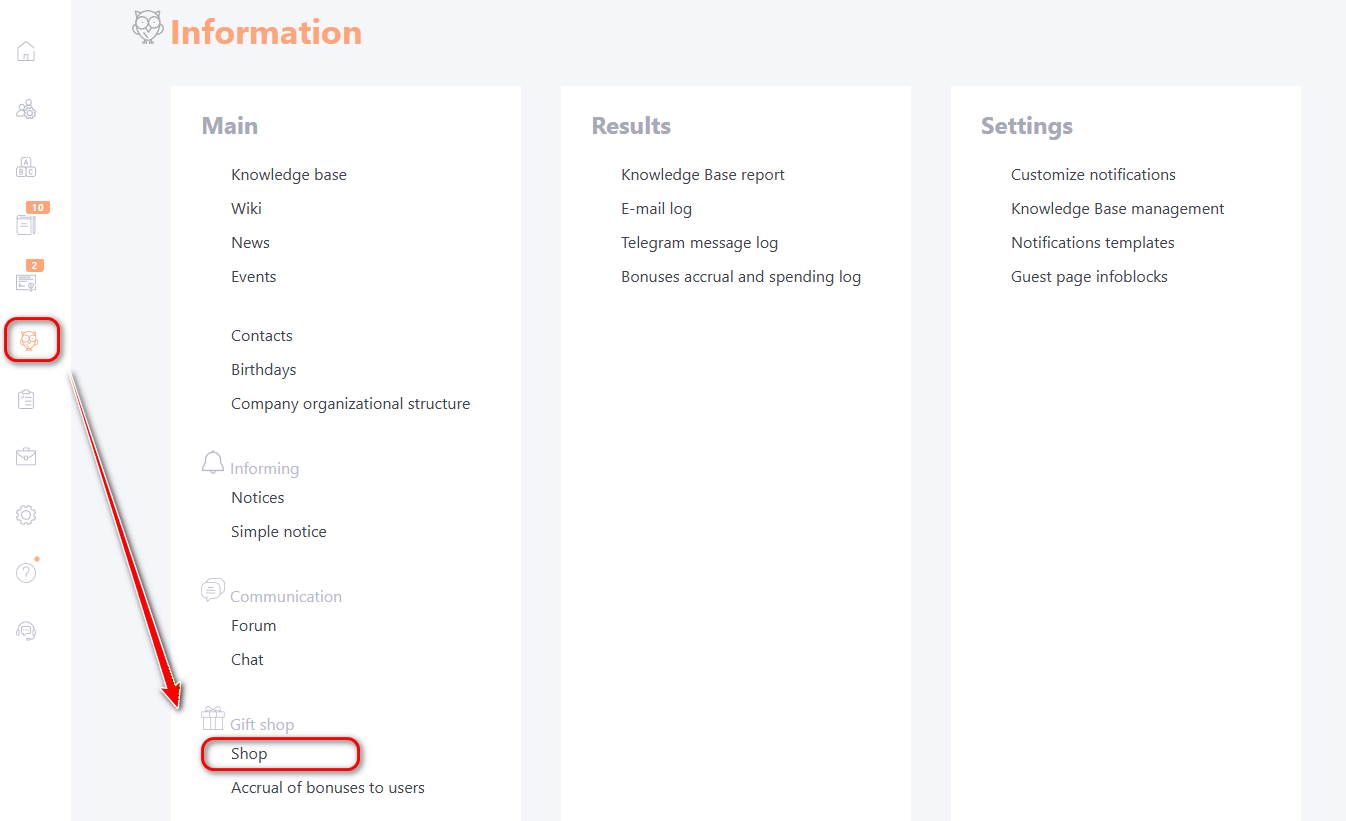 Access to the gift shop is regulated by the corresponding module Gift store.