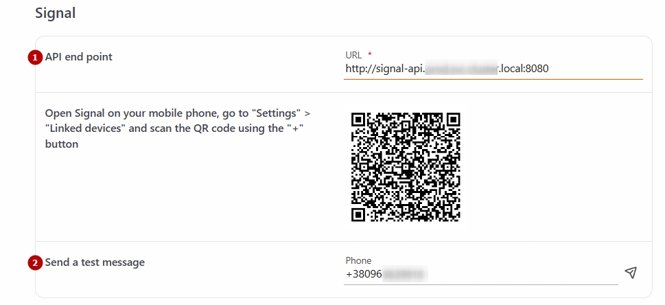 Therefore, integration uses a separate service, signal-cli-rest-api, which runs on a server and operates as a Signal device.