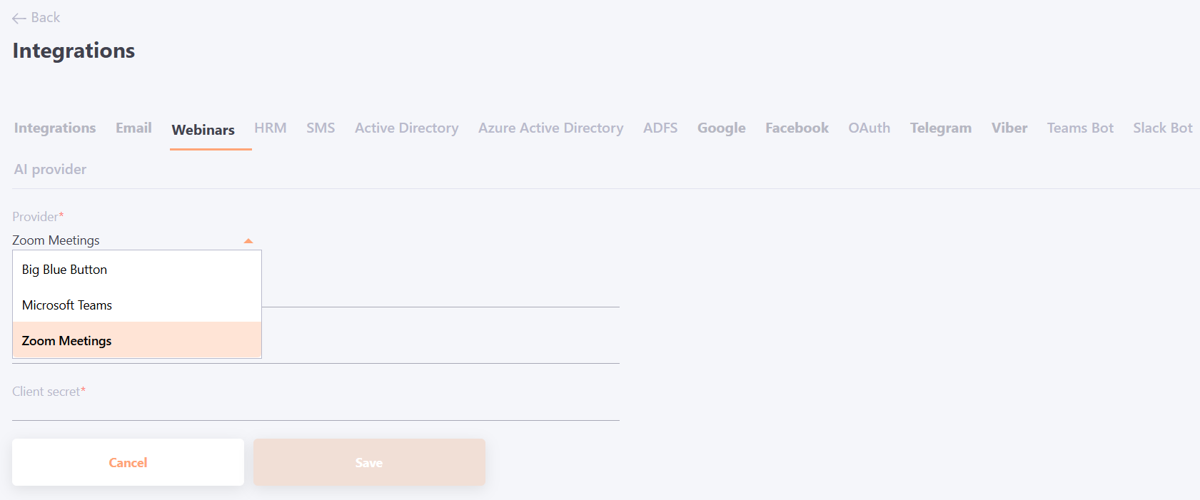 Learn more about creating an application for integration with Zoom in the article Zoom settings.