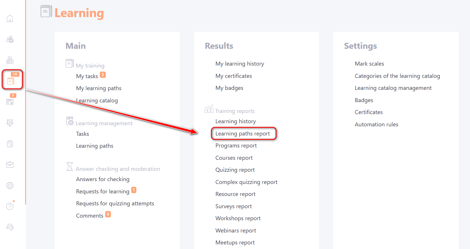 - Use learning paths reports - enables the Learning paths reports menu item.