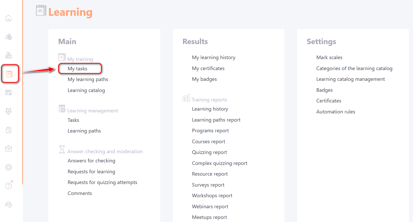 On check - tasks awaiting evaluation (e.g., test, comprehensive test, practicum, etc.). After review by the curator, depending on the assessment, the task may move to either "Completed" or "Failed";