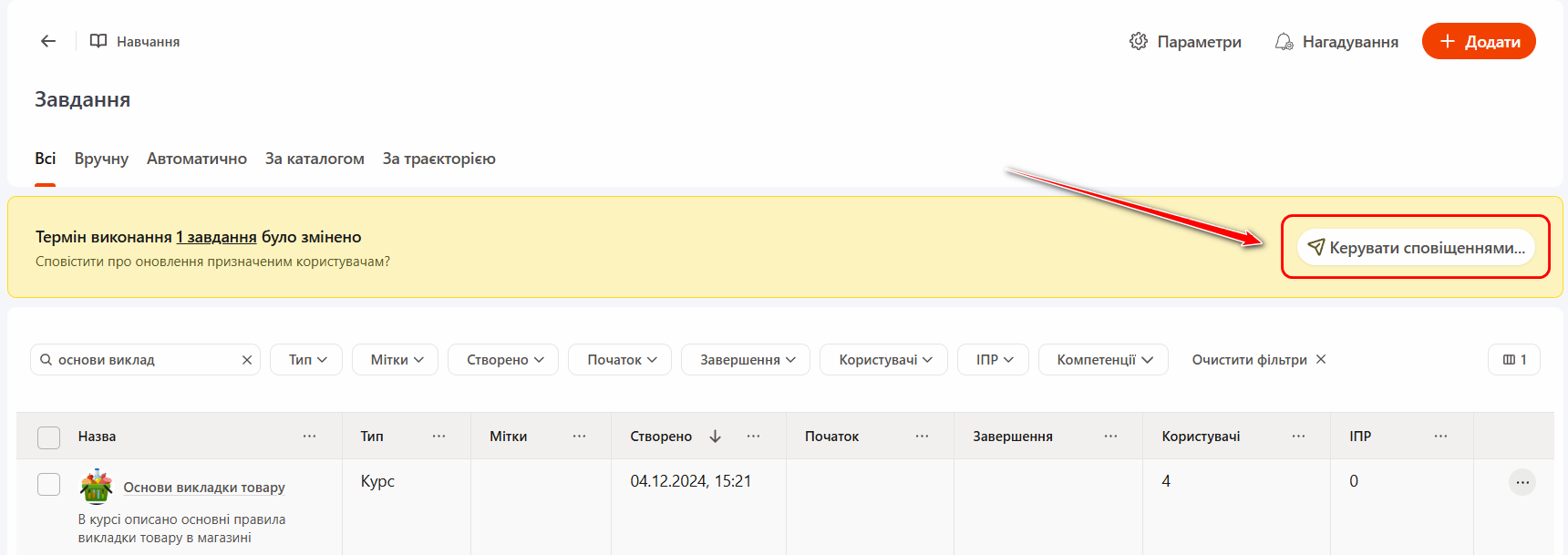Для всіх призначених на завдання користувачів можна додатково надіслати нагадування, якщо в задані були змінені налаштування. Для цього необхідно: