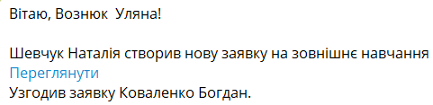 Шаблони повідомлень для заявок на зовнішнє навчання