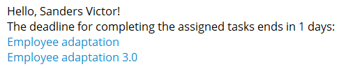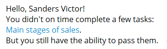 All users who have unsuccessfully completed or missed tasks are sent a message with a list of such tasks.