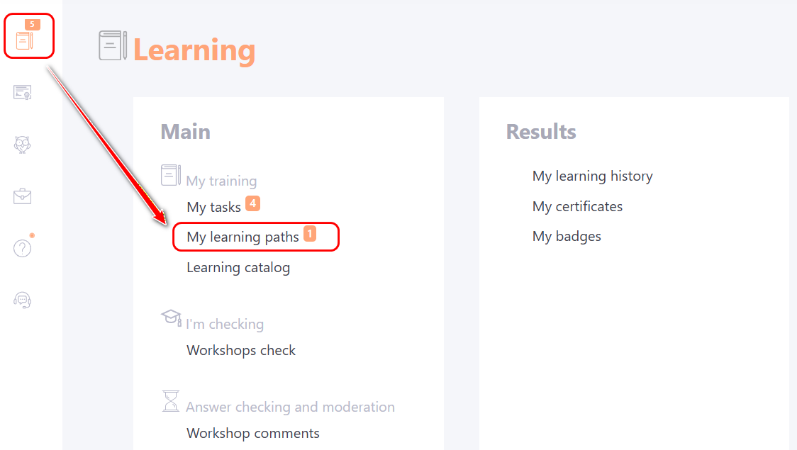 Near the My learning paths menu item, the number of learning paths assigned to the user will be displayed.