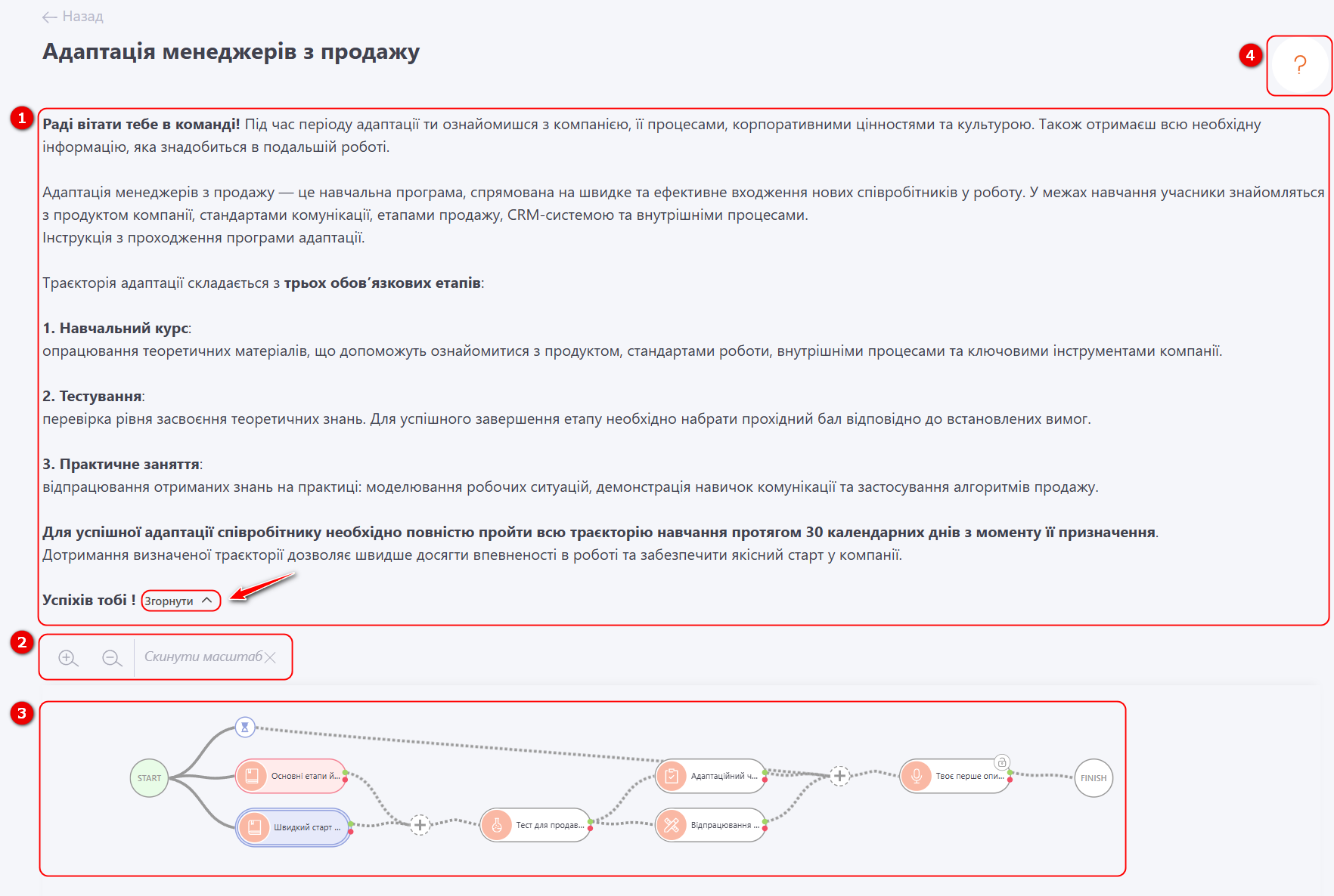 Візуальна схема (3) - дозволяє відстежувати прогрес проходження траєкторії, бачити призначені завдань та умови їх виконання у зручному графічному форматі.