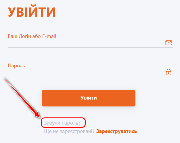 Щоб відновити пароль необхідно на сторінці входу на портал натиснути Забули пароль