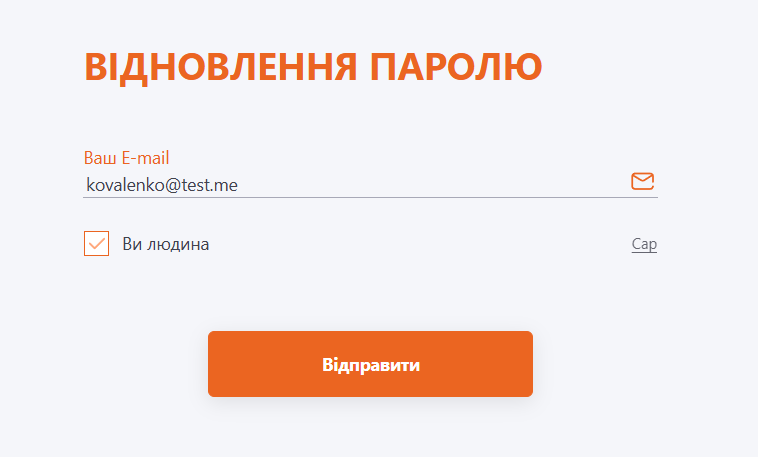 Після цього з’явиться повідомлення з текстом: «На вказаний E-mail надіслано інструкцію по відновленню пароля»