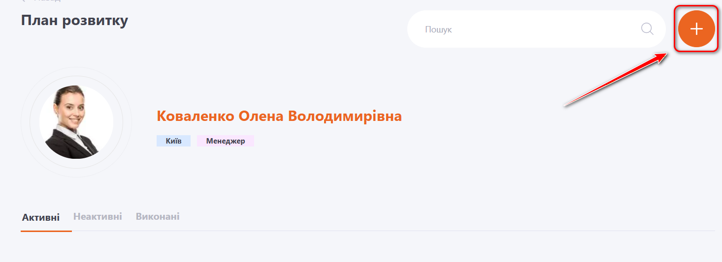 Щоб перейти до Планів розвитку користувача, необхідно в таблиці Планів розвитку навпроти потрібного користувача натиснути кнопку Плани розвитку: