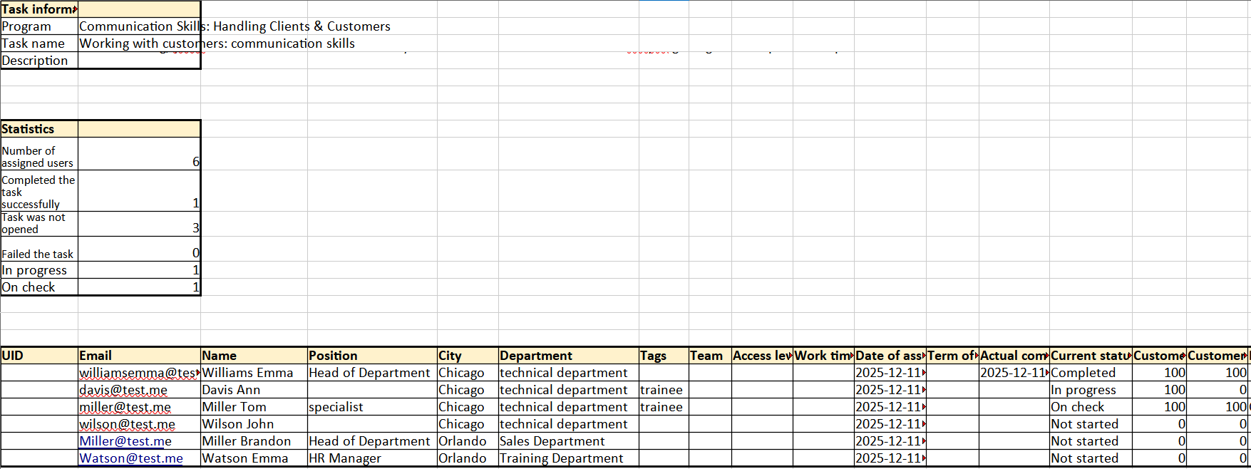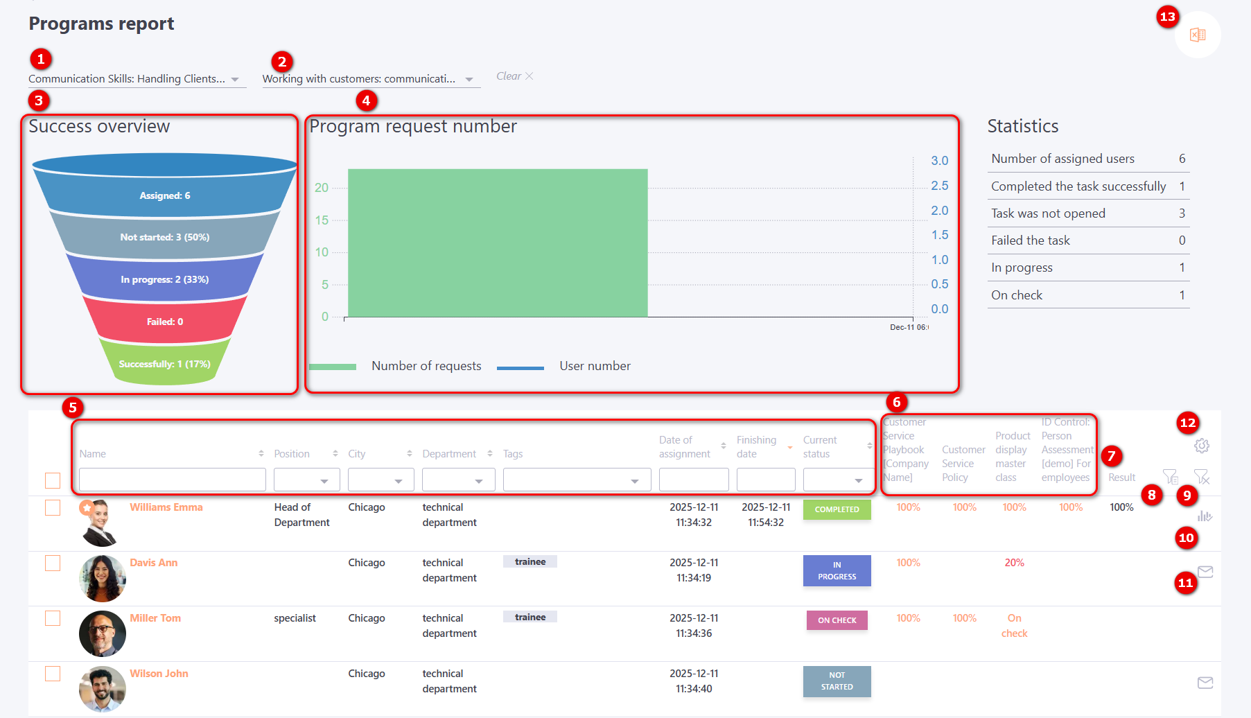 - Successfully - the number of all users who have successfully passed the Program (the status of the task for such users is "Completed");