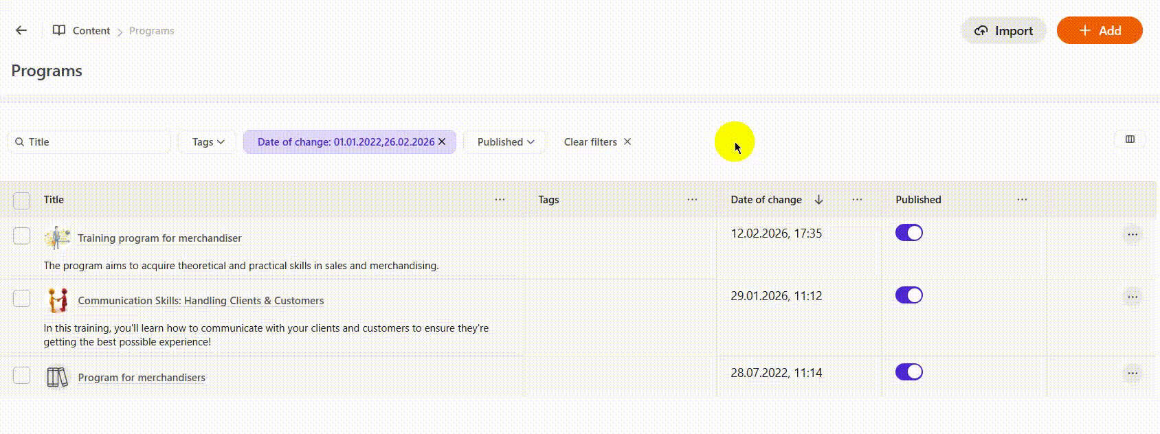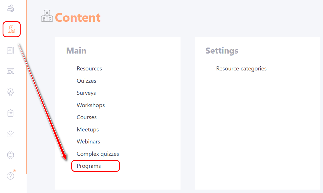 To go to the table with Programs go to the: Content - Programs menu