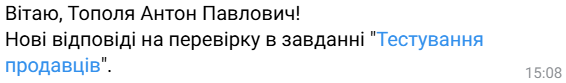 Повідомлення надсилається користувачу за умови, що у нього на сторінці Сповіщення включено опцію Отримувати повідомлення про нові відповіді для перевірки в тестах.
