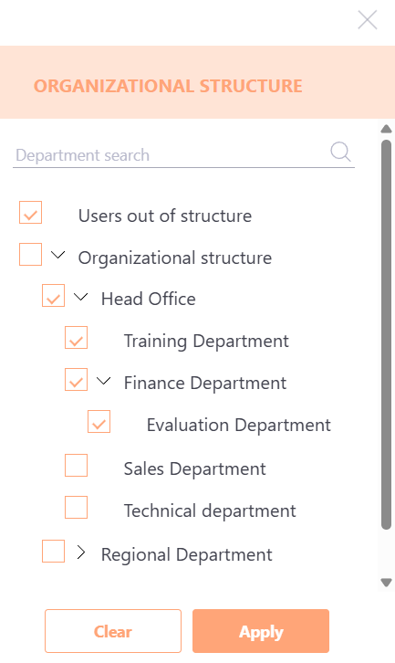 At the top of the list, there is a "Users out of structure" checkbox, which allows filtering users who do not belong to any folder in the structure.