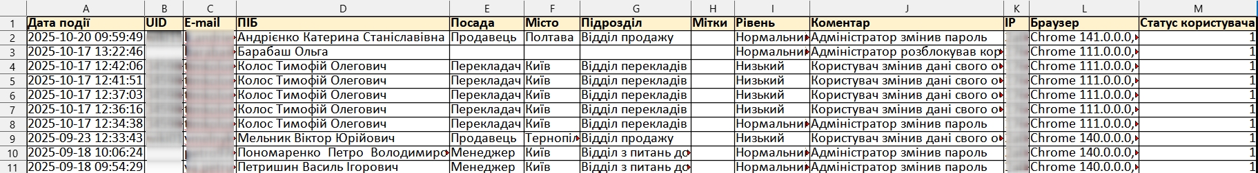Всі дані журналу безпеки можна вивантажити в Excel (9).