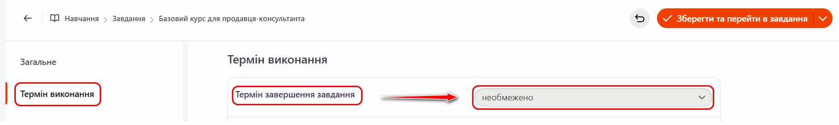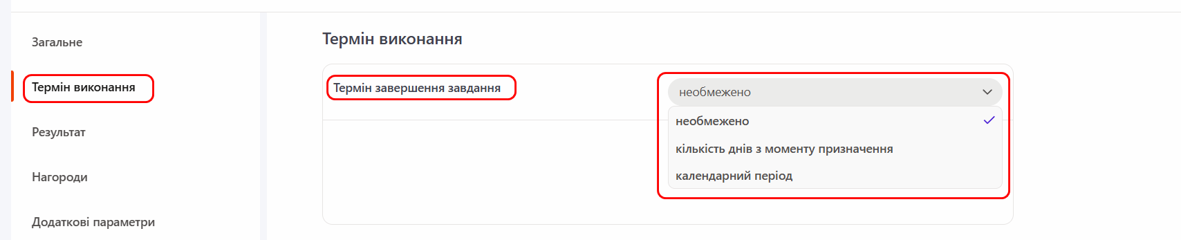 Налаштування "Термін виконання завдання" - передбачає обмеження виконання завдання за часом.