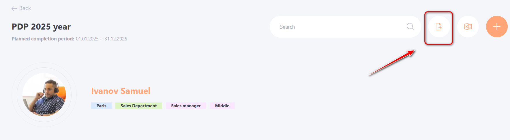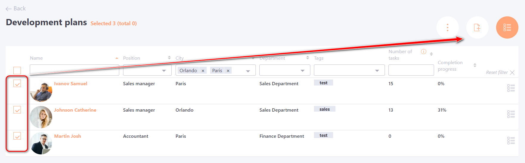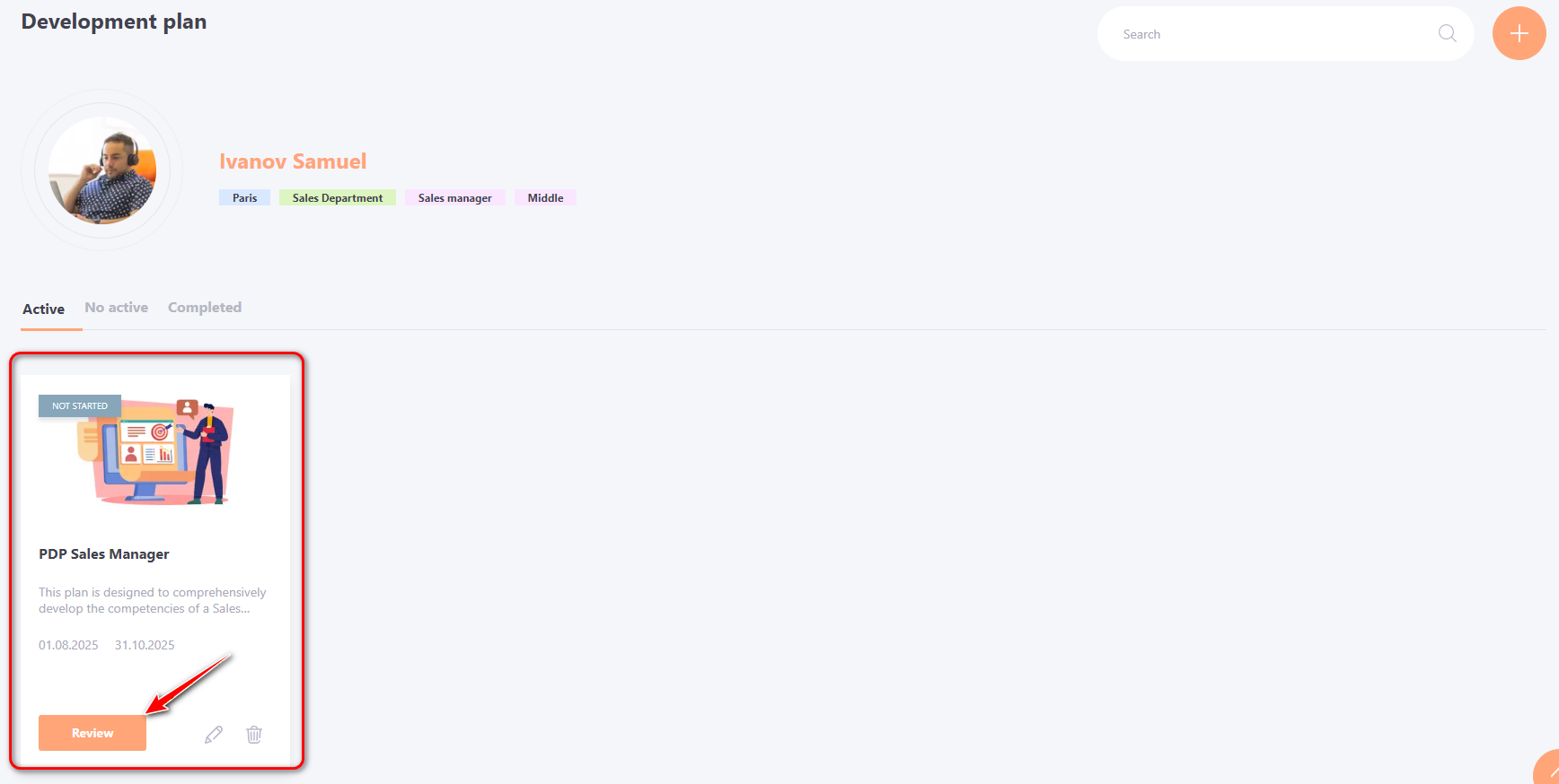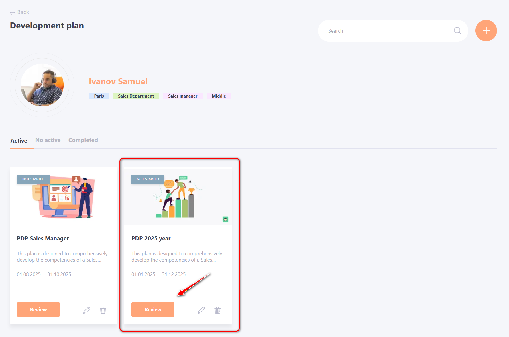Among the assigned development plans, select the one to which the tasks need to be added. For example, Manager development plan.