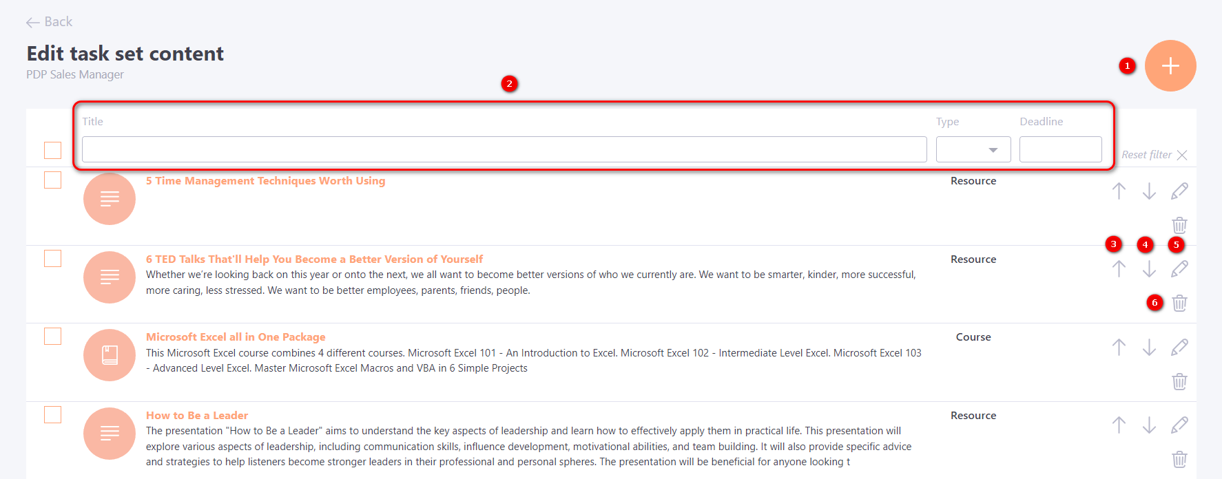 The tasks assigned to the set will be displayed in the User Development Plan in the same sequence in which they were displayed in the set itself.