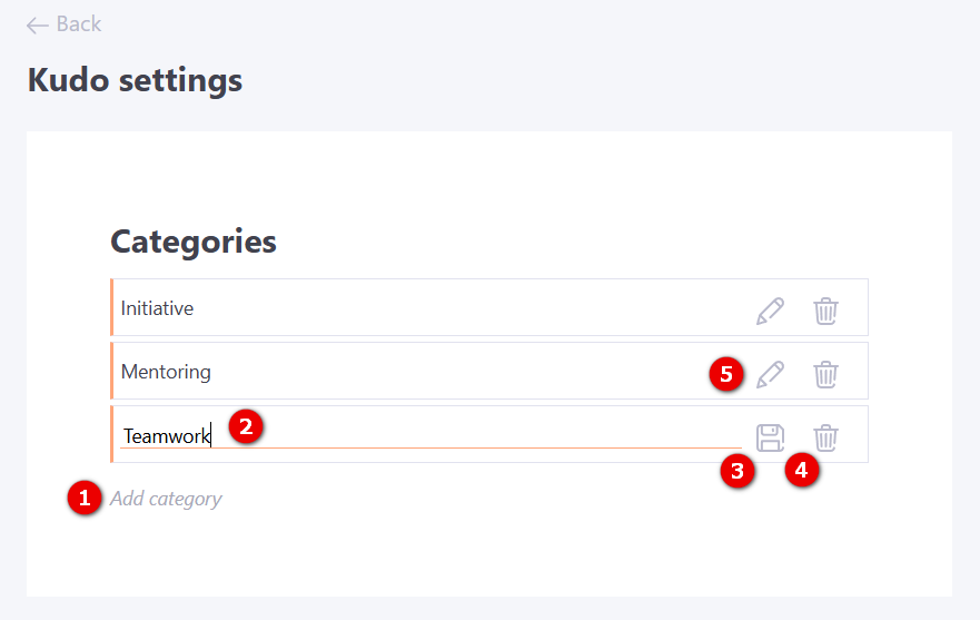 To add kudos categories, click the Kudos settings button on the Kudos page.