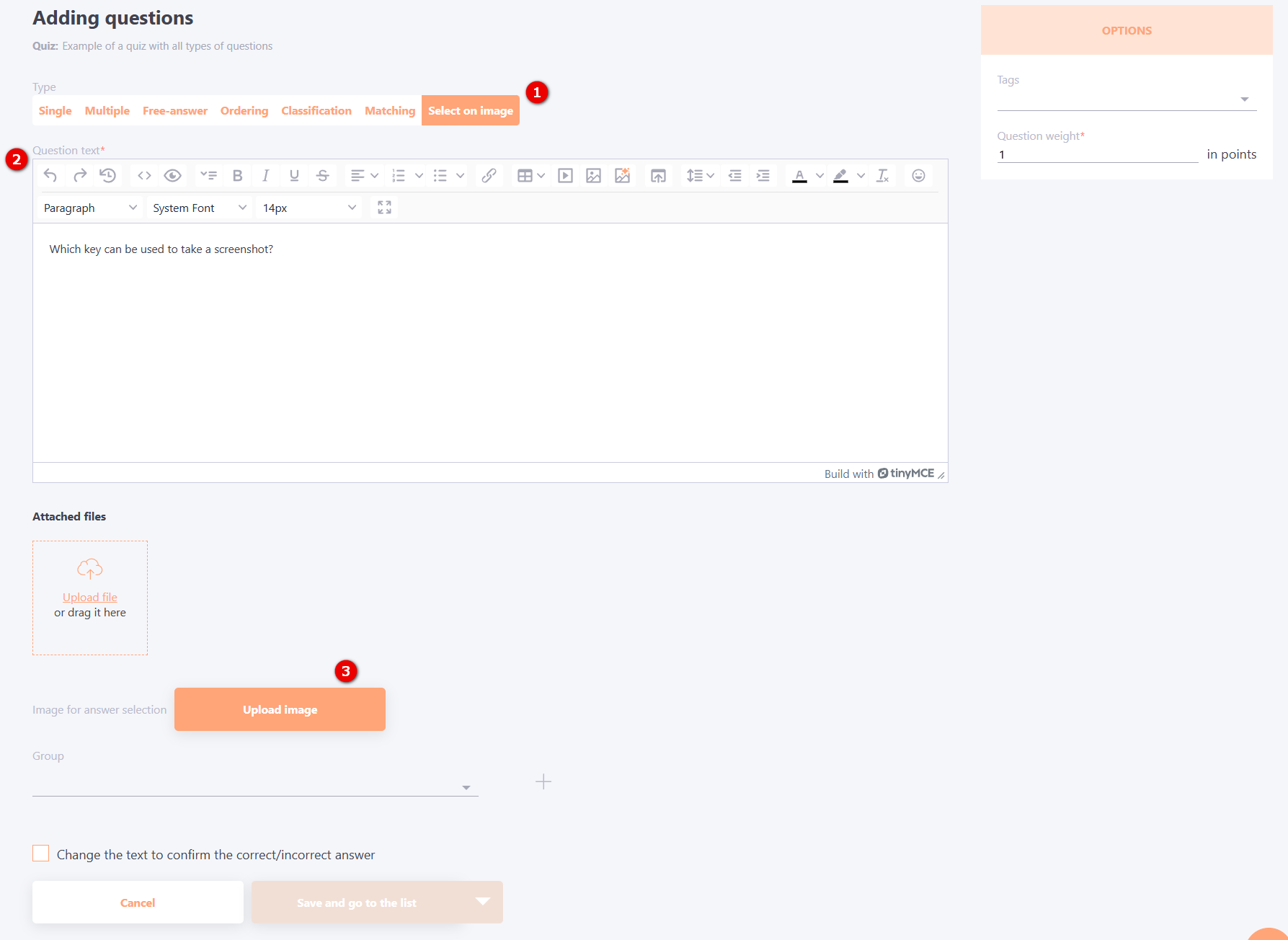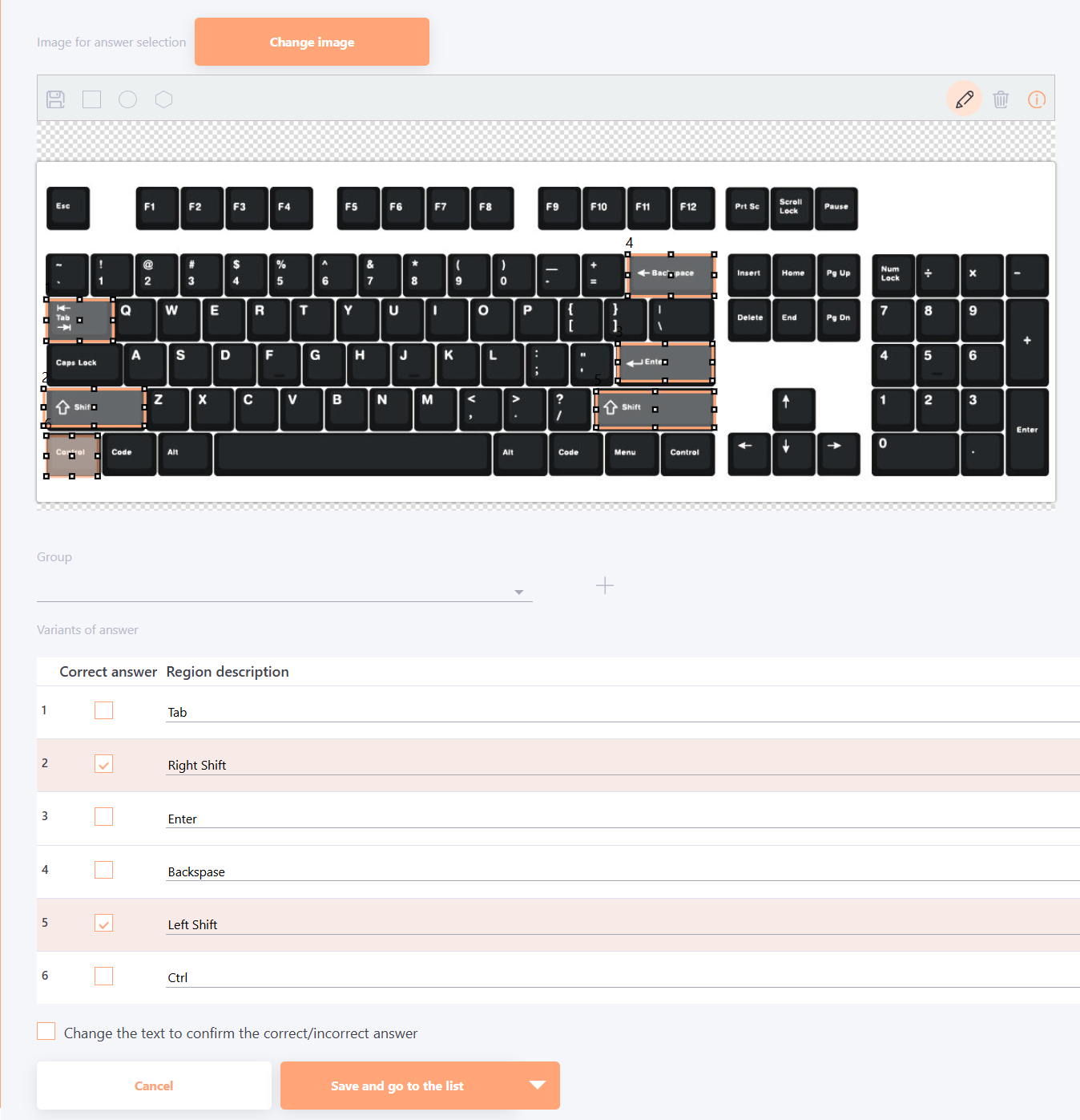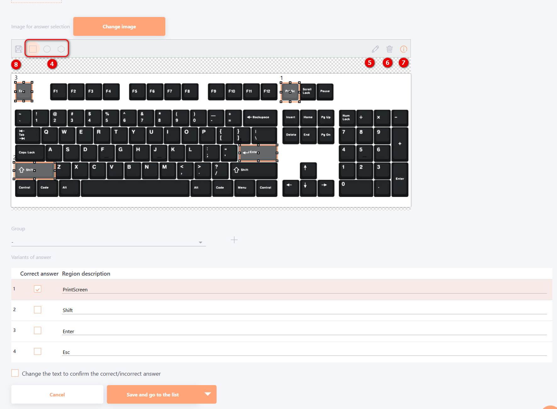 After uploading the image, an editor opens where you need to select the area of the image for the answer options.
