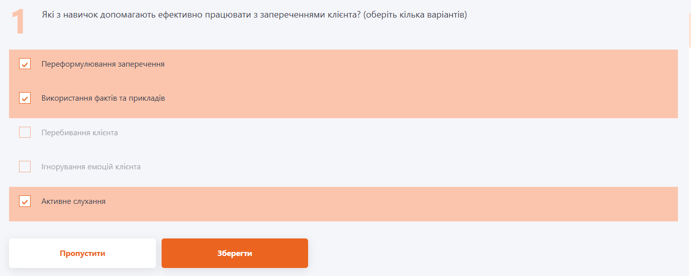 Приклад проходження питання з типом «Множинна відповідь»: