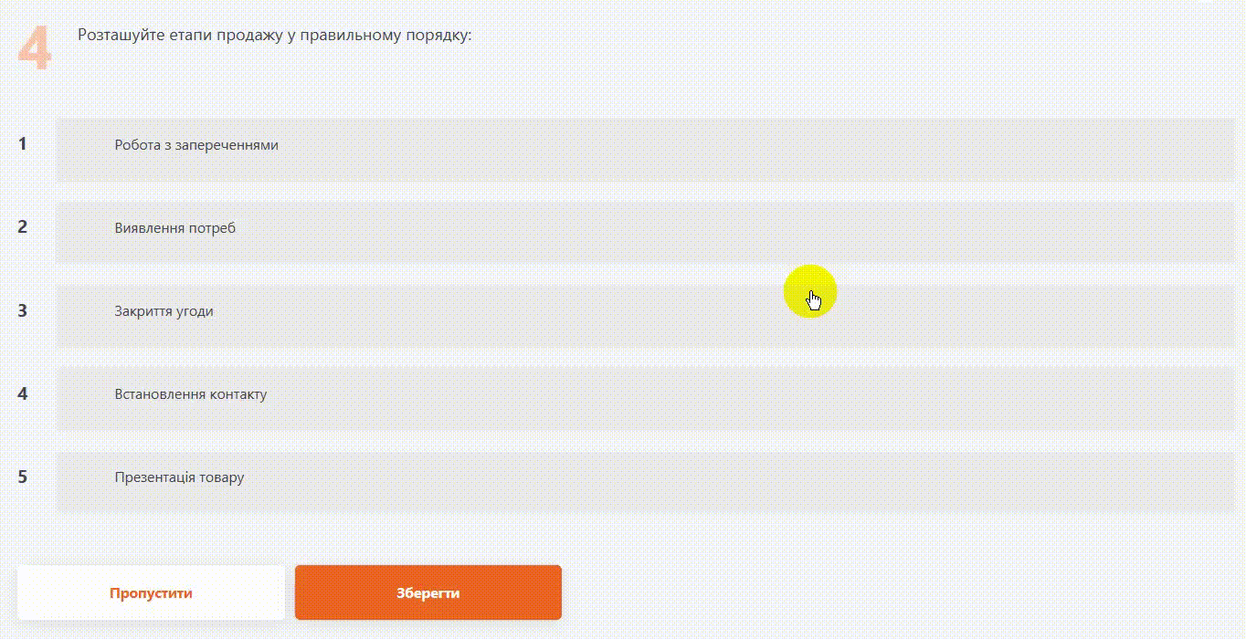 Приклад проходження питання на впорядкування: