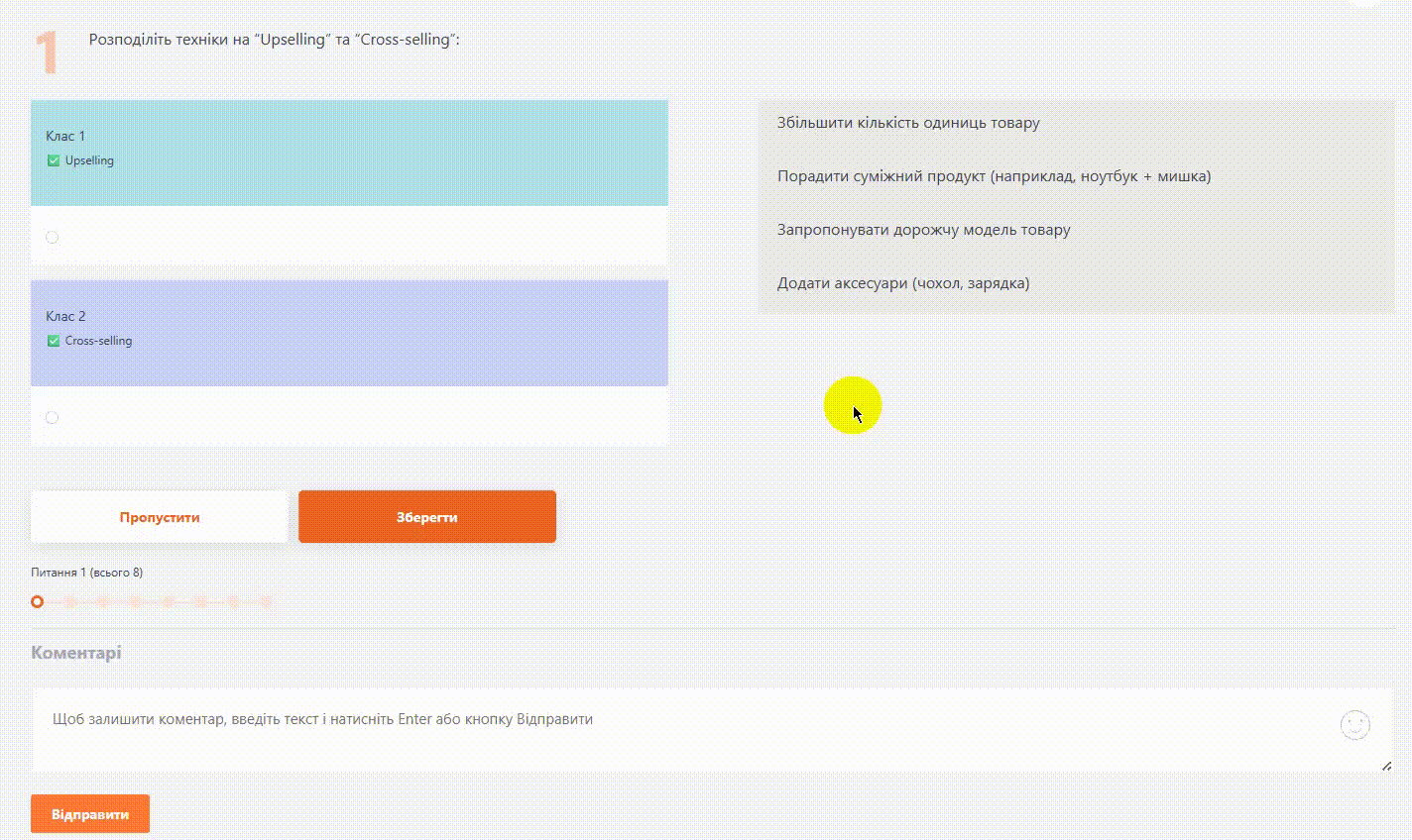 Приклад проходження питання на співставлення: