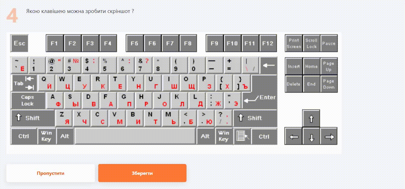 При проходженні запитання для користувача доступне лише зображення та при наведенні курсору підсвічуються фрагменти. Користувач може обрати один із цих фрагментів та зберегти відповідь.