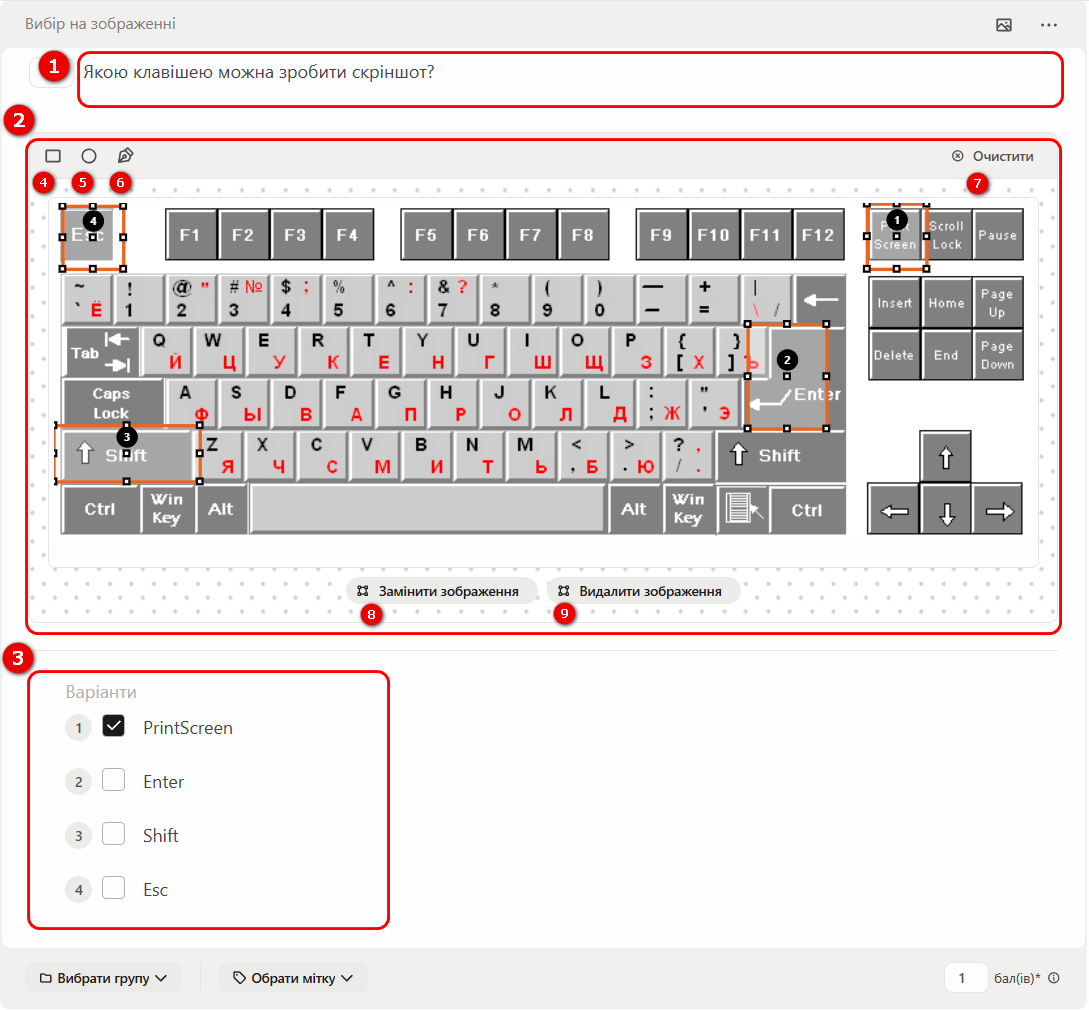 Приклад створення питання типу "Вибір на зображенні"