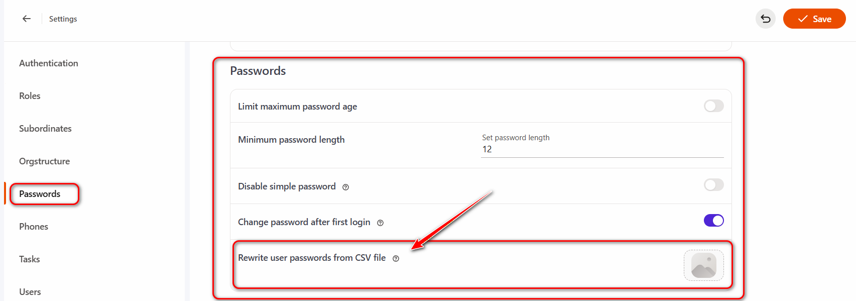 After downloading the file, all users on the list, according to the UID, have their passwords replaced with the new ones. Passwords can only be updated for active (not blocked) system users. If a user with such an id is not found, the system ignores them.