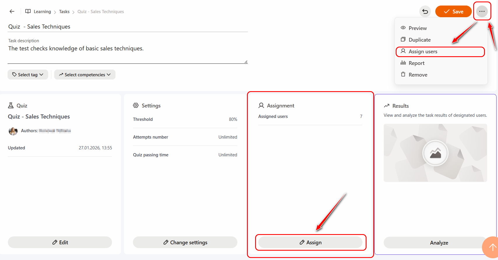 - Learning paths - tasks are assigned according to the learning path. More details: Learning paths